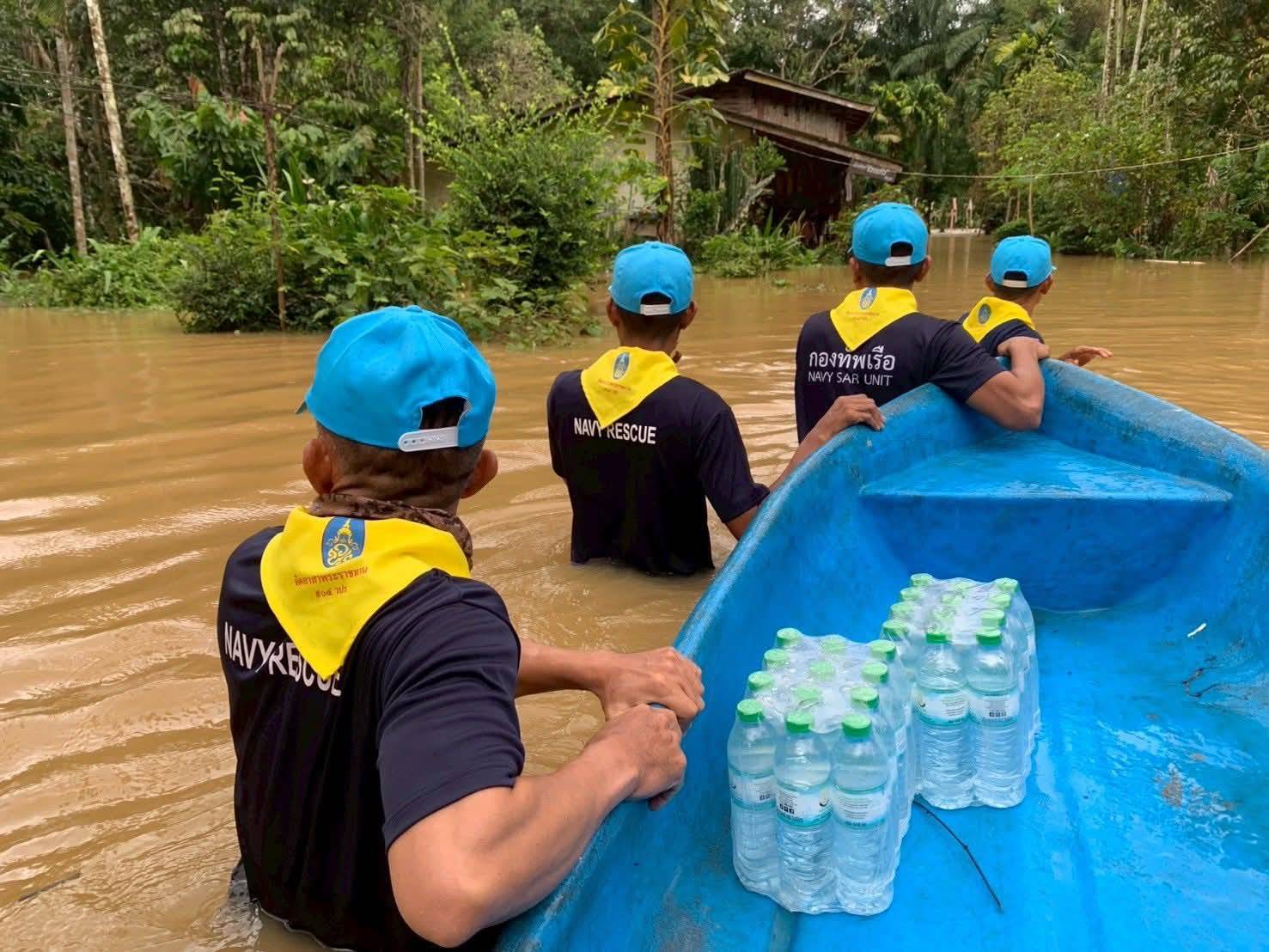 หน่วยรักษาความปลอดภัยทางทะเลเกาะหลีเป๊ะ และสถานีเรือละงู ทัพเรือภาค 3 ลงพื้นที่ตระเวนช่วยเหลือประชาชนในอำเภอละงู โดยนำเรือท้องแบนเข้าขนย้ายของจำเป็น พร้อมสอบถามความต้องการเร่งด่วนของผู้ประสบภัยในพื้นที่ติดลำคลองที่มีระดับน้ำสูงจนไม่สามารถสัญจรด้วยรถยนต์ได้