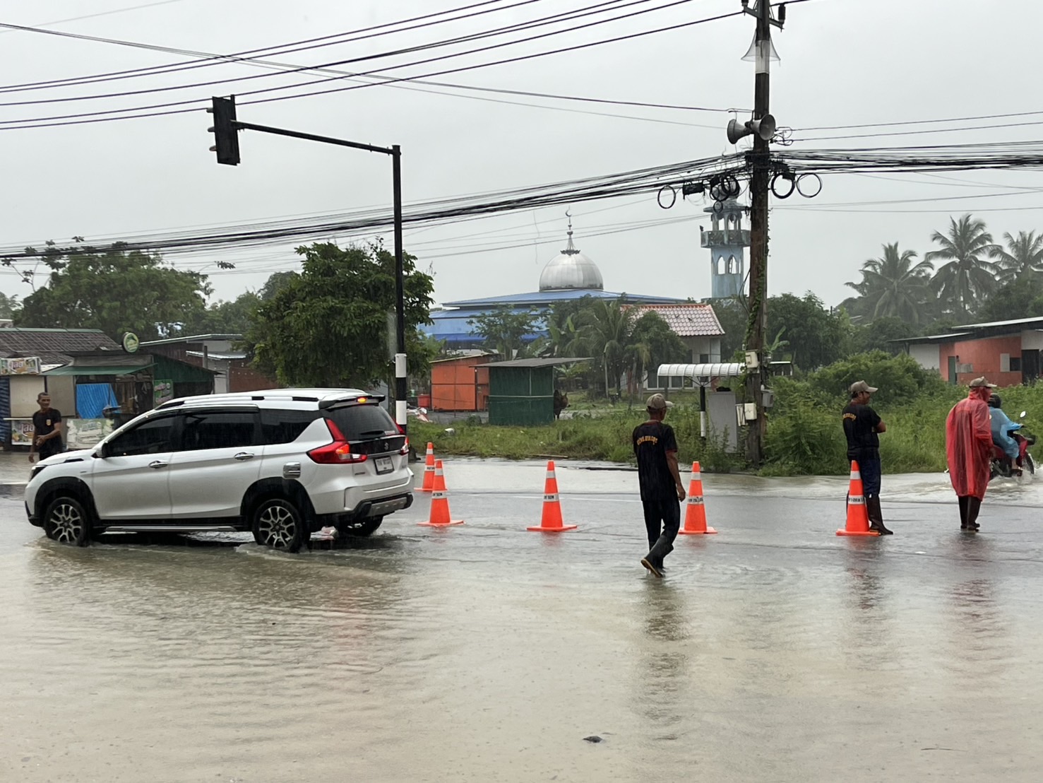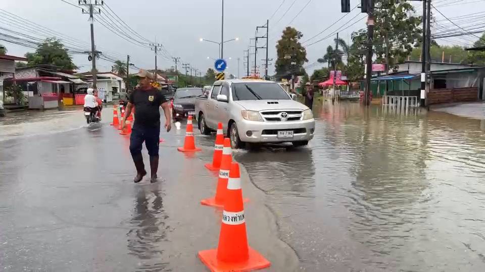 ขณะเดียวกัน ปริมาณน้ำจำนวนมากได้ทะลักเข้าท่วมถนนสายฉลุง–ละงู อำเภอเมืองสตูล โดยพบว่าน้ำไหลเข้าท่วมผิวจราจรฝั่งขาเข้าเมืองเป็นระยะทางกว่า 1 กิโลเมตร ทำให้ต้องปิดการจราจรเหลือเพียงช่องทางฝั่งขาออก ส่งผลให้การสัญจรติดขัดยาว เจ้าหน้าที่ตำรวจร่วมกับ อพปร.ฉลุง ได้เร่งอำนวยความสะดวก พร้อมขอให้ผู้ใช้รถที่ไม่จำเป็นหลีกเลี่ยงเส้นทางดังกล่าว ทั้งยังเตือนผู้ขับขี่รถจักรยานยนต์เพิ่มความระมัดระวัง เนื่องจากเสี่ยงเกิดอุบัติเหตุและรถดับกลางน้ำ